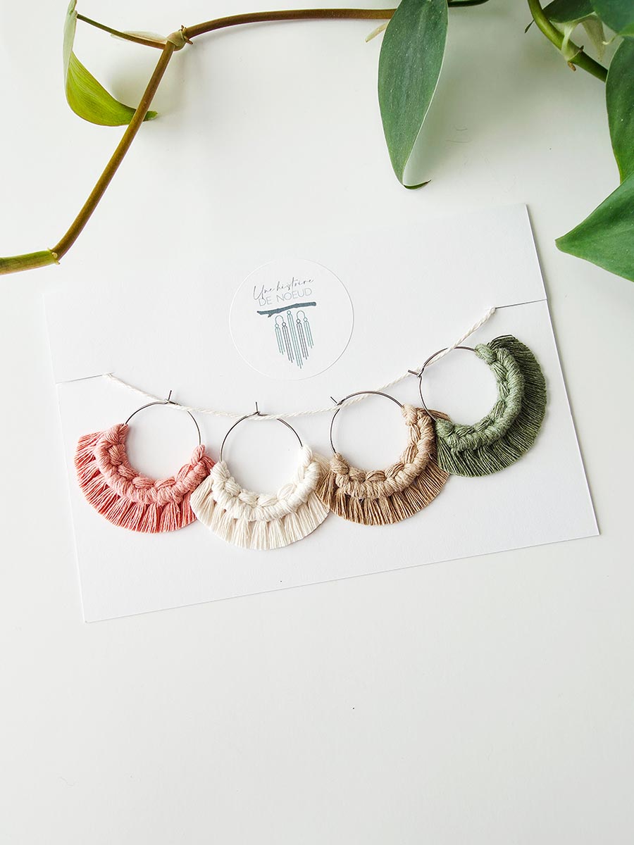 Ensemble de 4 marques verres à vin en macramé boho et festifs ✨🥂